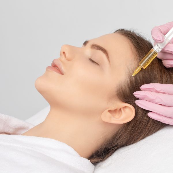 Se infiltra en el cuero cabelludo para nutrir los folículos pilosos y estimular el crecimiento del cabello.